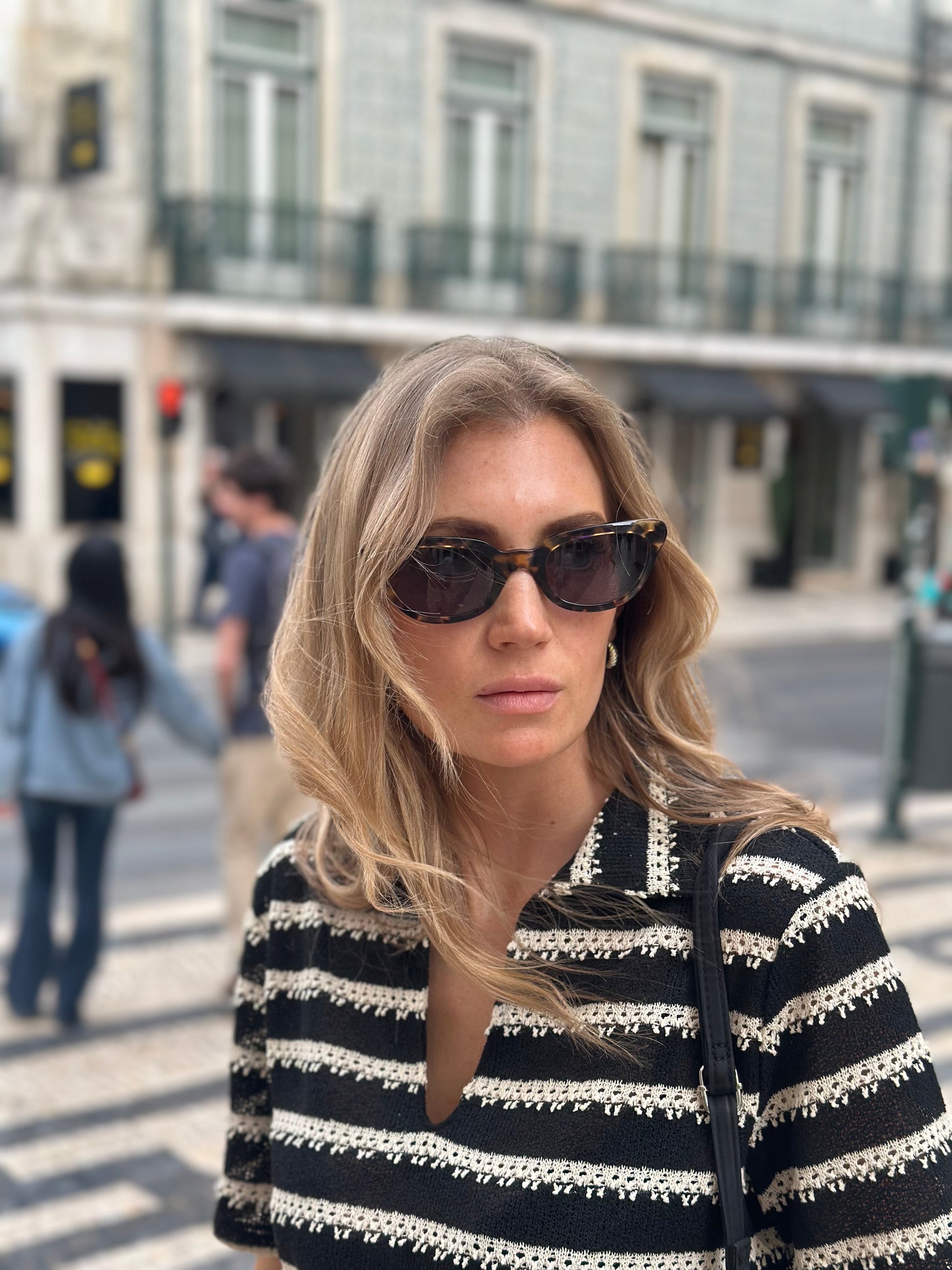 Klasyczne, szykowne okulary przeciwsłoneczne, w kształcie kociego oka, odważne, a jednocześnie minimalistyczne. Idealne do garderoby kapsułowej.